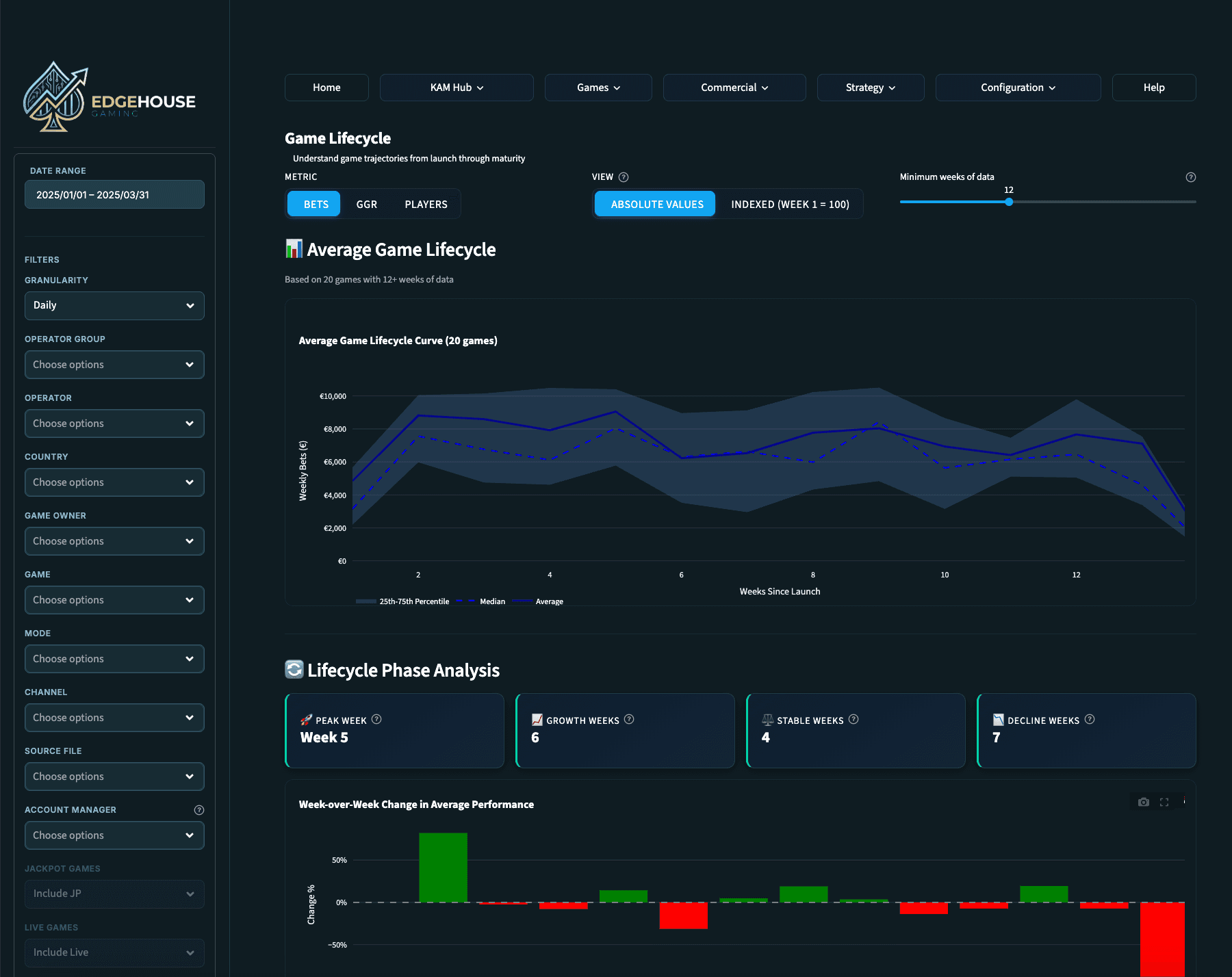 Measure how new game launches are performing across your operators. Know within days whether a launch is gaining traction or needs attention. Powered by your uploaded launch date data.